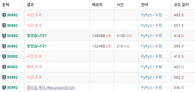 이거 제출할 때마다 결과가 다르다.. 모지? 이거랑 비슷한 코드가 맞은 경우가 있길래 한 번 똑같이 제출해봤는데, 저번엔 시간 초과 떴던 게 이번엔 맞았다..?? 그래서 제한 시간을 수정해놓으셨나 했는데, 또 다시 제출하니까 이번엔 또 시간 초과다...???? 모지용?