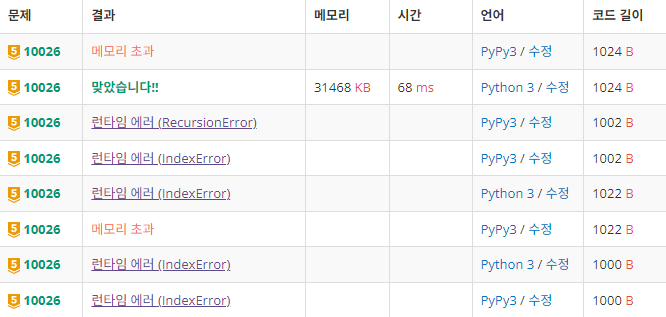런타임 에러 저거 indexerror는 .. 진짜 어이 없는 부분에서 실수한 게 문제였다. 어느 부분에서 N을 5라고 쓴 곳이 두 군데 있었당 ^^ 나는 진챠 바보 ~ 미량이가 뚝딱 발견해서 고쳤더니 맞았다 !!!