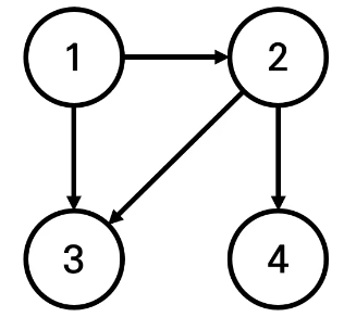 이 때 1번 도시에서 출발하여 도달할 수 있는 도시 중에서, 최단 거리가 2인 도시는 4번 도시 뿐이다. 2번과 3번 도시의 경우, 최단 거리가 1이기 때문에 출력하지 않는다.