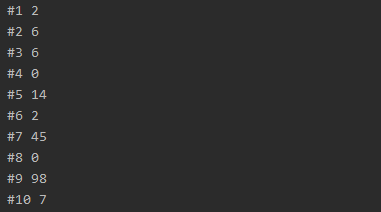 테스트 케이스 t에 대한 결과는 “#t”을 찍고, 한 칸 띄고, 정답을 출력한다.