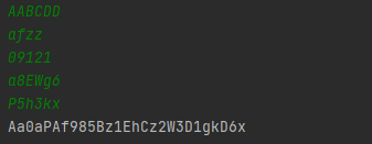 이 장난감에 있는 글자들은 영어 대문자 ‘A’부터 ‘Z’, 영어 소문자 ‘a’부터 ‘z’, 숫자 ‘0’부터 ‘9’이다. 영석이는 칠판에 글자들을 수평으로 일렬로 붙여서 단어를 만든다. 다시 그 아래쪽에 글자들을 붙여서 또 다른 단어를 만든다. 이런 식으로 다섯 개의 단어를 만든다. 아래 그림 1은 영석이가 칠판에 붙여 만든 단어들의 예이다.