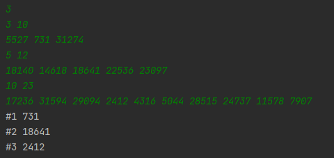 print(f'#{t+1} {Q[front+1]}')