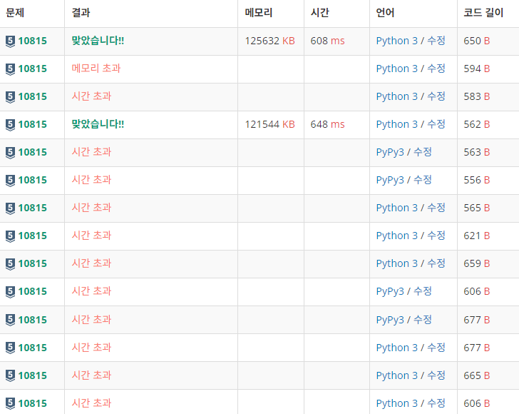 구글링 결과, 백준 시간초과가 뜨면, 입출력할 때 쓰는 함수들과 리스트를 선언하고 할당하는 과정에서 append를 쓰는 것도 시간 복잡도가 크다는 것을 알게 되었다. 그것을 수정하여 코드의 함수들을 모두 수정하였다.