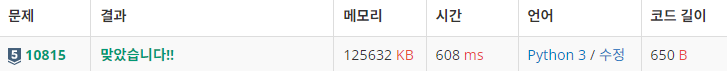 출력 결과는 위와 동일하고, 제출 결과도... 동일했다.. (충격) (스트레스,,)