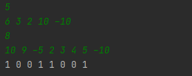 첫째 줄에 입력으로 주어진 M개의 수에 대해서, 각 수가 적힌 숫자 카드를 상근이가 가지고 있으면 1을, 아니면 0을 공백으로 구분해 출력한다.